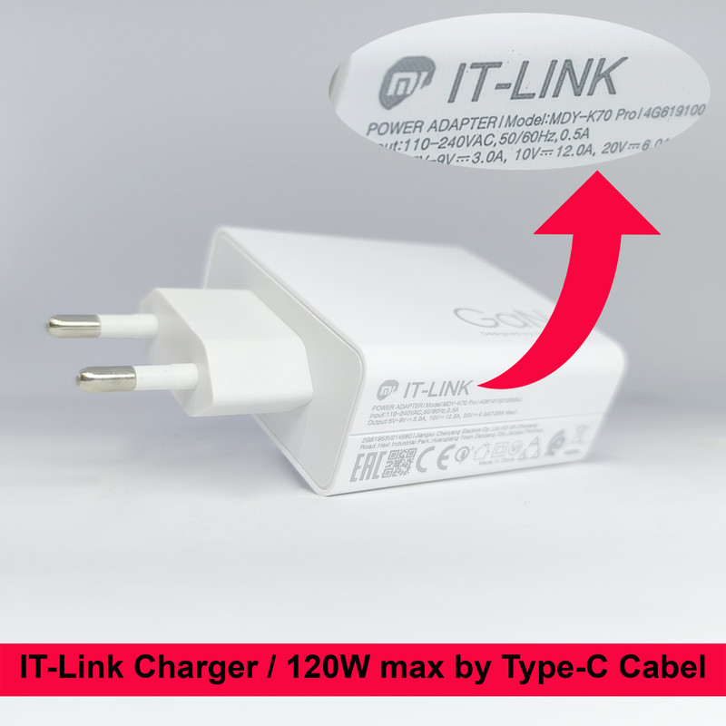 شارژر دیواری مدل MDY K70 Pro با توان خروجی 120 وات و با پورت خروجی Type-C می باشد. این شارژر قدرتمند به همراه کابل دو سر Type-C در یک بسته بندی عرضه شده است