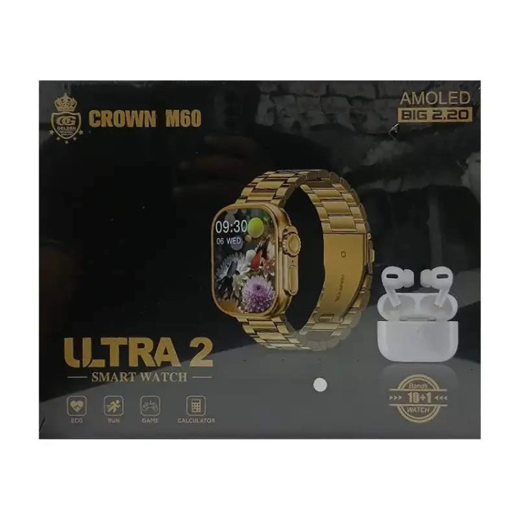 ساعت هوشمند ایرپاد دار هفت بند رنگ طلایی crown m60