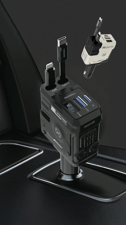با شارژر فندکی حرفهای DRIVE HUB از برند Maxwell، تجربهای فراتر از یک شارژر معمولی داشته باشید! این دستگاه با توان ۱۲۰ وات، کابل داخلی جمعشونده برای آیفون و Type-C و نمایشگر دیجیتال ولتاژ، مرکز کنترل انرژی ماشین شماست.